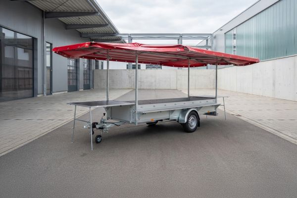 Funktionaler Verkaufsanhänger mit stufenweisem Aufbausystem. Verfügbar in sämtlichen Gewichts- und Größenklassen.