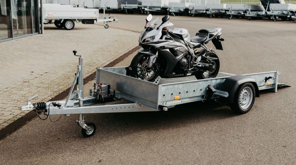 Ein Absenkanhänger eignet sich perfekt für den Transport von Motorrädern. Das Motorrad lässt sich einfach auf den Anhänger schieben oder fahren. Das Verladen ist dadurch viel einfacher und sicherer als bei herkömmlichen Anhängern.
