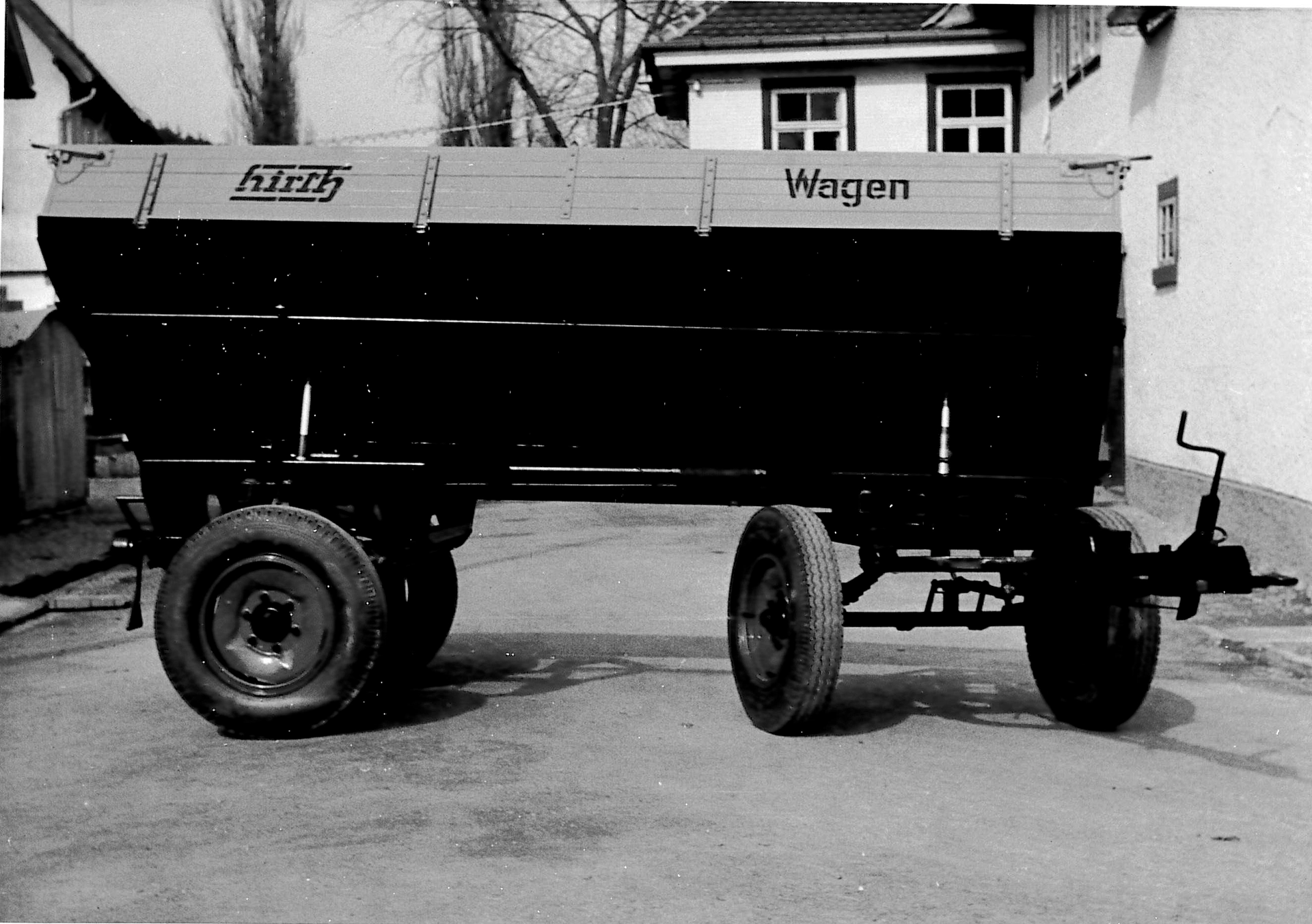 Ein Wendepunkt in der Geschichte der Firma HIRTH tritt ein, als Bruno Hirth Senior erkennt, dass sich aufgrund der raschen Entwicklung und Motorisierung der Landwirtschaft ein neuer Bedarf an landwirtschaftlichen Geräten ergibt. Die Firma spezialisiert sich daraufhin vollständig auf den Fahrzeugbau, um diesem Bedarf gerecht zu werden. Gesellen wurden eingestellt und Ende der 1950er Jahre wurden die ersten Kipp- und PKW-Anhänger gebaut. Kurz darauf folgten auch schon die ersten Anhänger für LKW.
